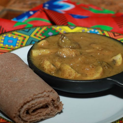 Mushrooms with Shiro (a homemade blend of dried split peas) and various spices to form a thick and flavorsome sauce-like stew.