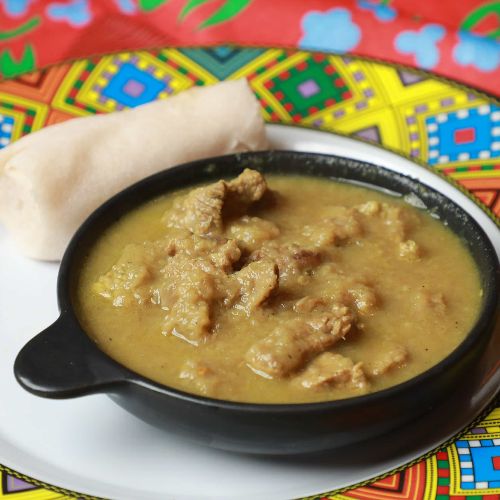Beef cubes that are slowly cooked with Berbere (a fiery Ethiopian spice blend) and onions for a succulent sauce-like stew that’s rich in flavor.