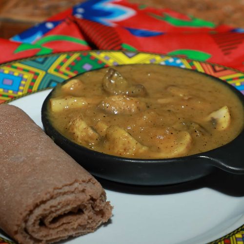 Slow-cooked chicken fillet with freshly chopped onions, garlic, turmeric and a touch of Kibe (Ethiopian spiced butter) for aroma and taste.