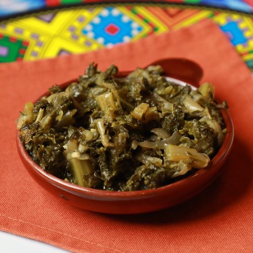 A unique Ethiopian taste that is achieved by blending spinach and mushrooms prepared in an assortment of herbs and spices.