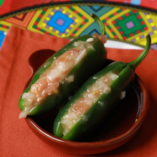 Chilies ranging from mild to very hot, depending on nature’s produce. Each chili is stuffed with chopped onions, tomato and olive oil. *Seasonal